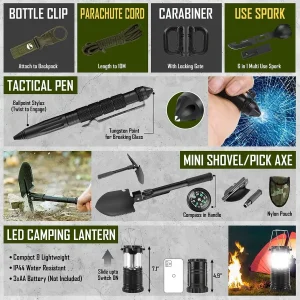 Equipment Supplies with First Aid Kit, Camping Axe, Headlamp, Crossbody Bag for Camping